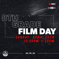 8TH GRADE FILM DAY - Sign your 8th grader up to be part of our Film Day! This video will be featured in our 8th Grade Celebration Service on Wednesday, May 27, before they move on to high school. It will be a fun testimony of God at work and will highlight their time in junior high. Below are the questions we’ll ask them during filming:
